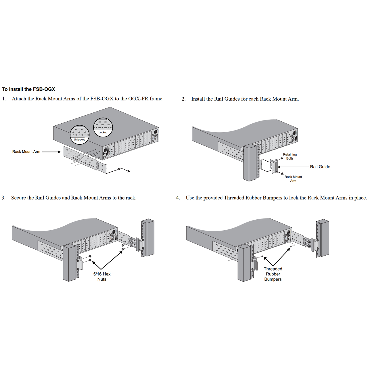 Ross FSB-OGX OGX Frame rear support brackets for OGX-series frames, extends to 30 inches from frame. To help reduce mechanical stress due to cable weight, these rear support brackets are available for the OGX-FR frame. The FSB-OGX are specifically engineered to compensate for extra load stress associated with certain applications, such as mobile truck installations, to also support the rear of the OGX-FR frame.