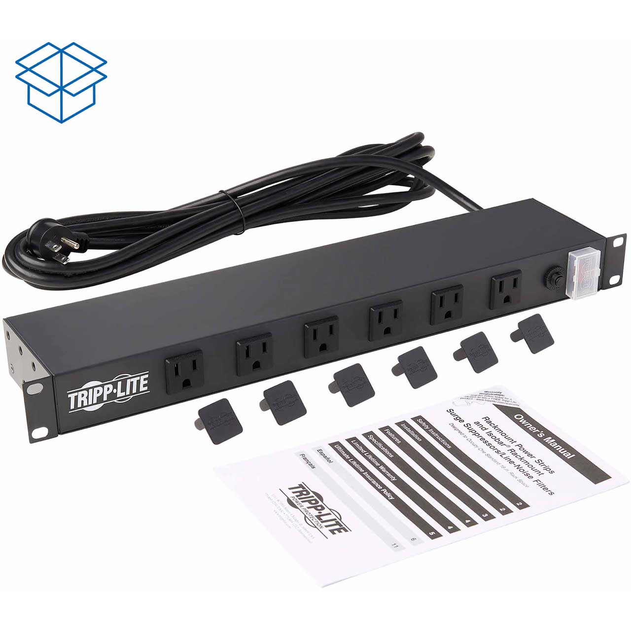 Tripp Lite's RS-1215-RA Power Strip offers 15 amp capacity AC power distribution in a versatile multi-mount cabinet. Detachable mounting flanges are configurable for rackmount, wallmount and under-counter installation. Uses only 1 rack space (1U) when installed in any 19 inch rack meeting EIA standards. Unfiltered electrical pass-through makes RS-1215-RA ideal for distributing alternate waveform UPS or generator power in rack enclosures, network closets and more. Includes 12 NEMA5-15R outlets (6 front / 6 rear) placed at a right angle (with ground pin at bottom), 15 ft AC power cord and lighted switch with cover prevents risk of accidental turn-off.