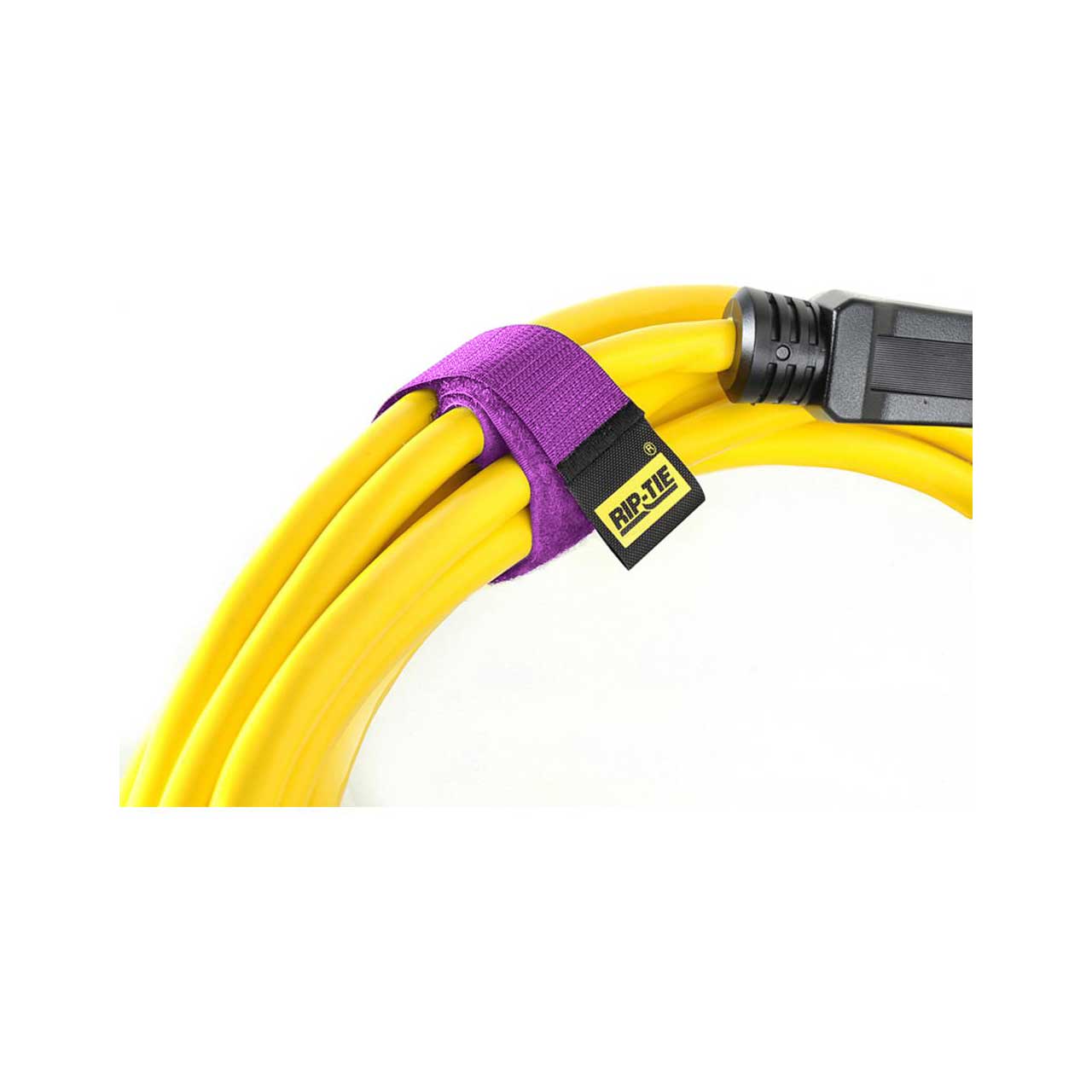Rip-Tie's original patented tie, one end semi-permanently attaches to a cable, the other end has a pull-tab to fasten and unfasten the Rip-Tie with one hand. Durable and tested up to 10,000 release cycles.