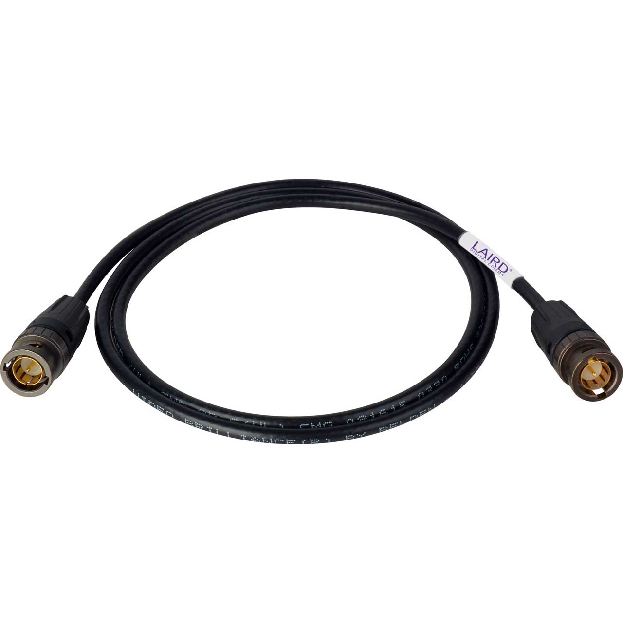 Laird RTBNC-1855 UHD BNC Cable Assembly with True 75 ohm 6G-2K Performance The Laird RTBNC-1855 6G-2K UHD Cable Assembly with Neutrik rearTWIST UHD BNC connectors & Belden Mini RG59 1855A is built for extended bandwidth for 6G-2K video applications. Neutrik's rearTWIST UHD BNC achieves increased headroom and offers additional return loss reserve for potential impedance deviations resulting from cable bending, incorrect connector assembly or faulty connection interfaces without signal interruption. The rear twist technology simplifies insertion and removal of recessed BNC panel connectors and allows for easy patch bay interface. No special BNC removal tool is required; simply use the rear boot twist. The 23AWG Belden sub-miniature coaxial cable features a solid .023 " bare copper conductor, gas-injected foam HDPE insulation, Duofoil + tinned copper braid shield (95% coverage), and a PVC jacket. Custom lengths available.
