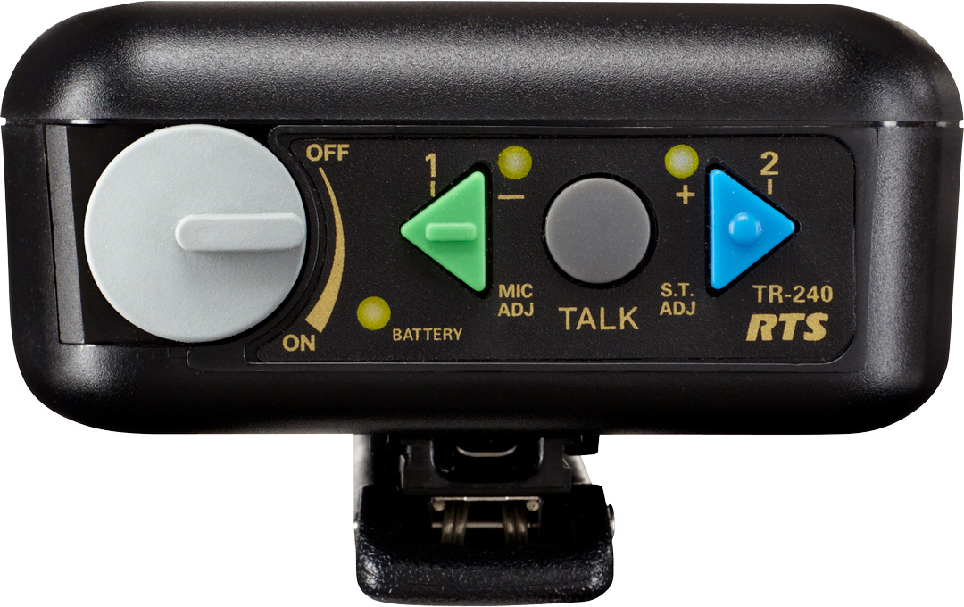 The TR-240 beltpacks have the ability to be configured in one of three operating modes: wireless, wired, or master