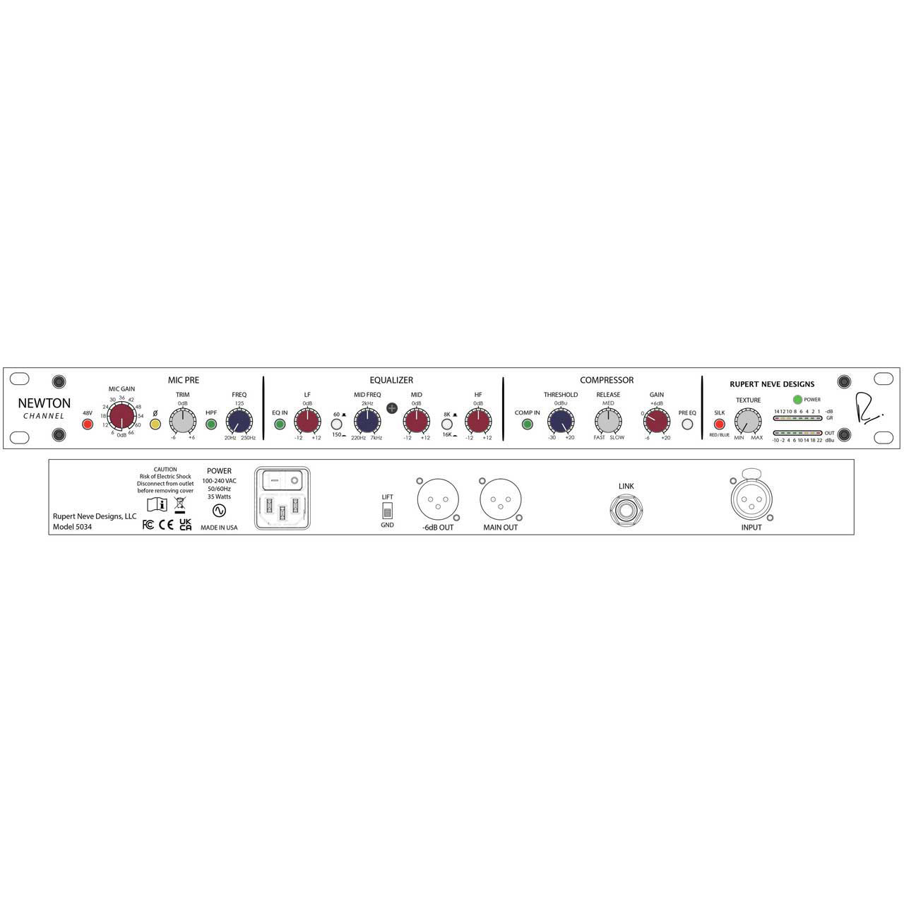 The Newton Channel is a powerful modern channel strip born from a legendary sonic lineage. Its intuitive design provides classic sound on demand, with all the instantly-recognizable character, musical tone-shaping abilities, and proven reliability that define a Rupert Neve Designs product. The Newton is equally well-suited for a project studio, large-scale commercial facility or live sound rig - giving more engineers, producers, and artists a chance to join the RND family than ever before. The Newton's microphone preamplifier contains all the tone and musicality expected from a Rupert Neve Designs piece. This preamp makes it incredibly easy to quickly dial in a tight, clean and detailed sound; and with a robust 72dB of gain including 6dB of fine trim control, the Newton is ideally suited for a wide variety of sources.