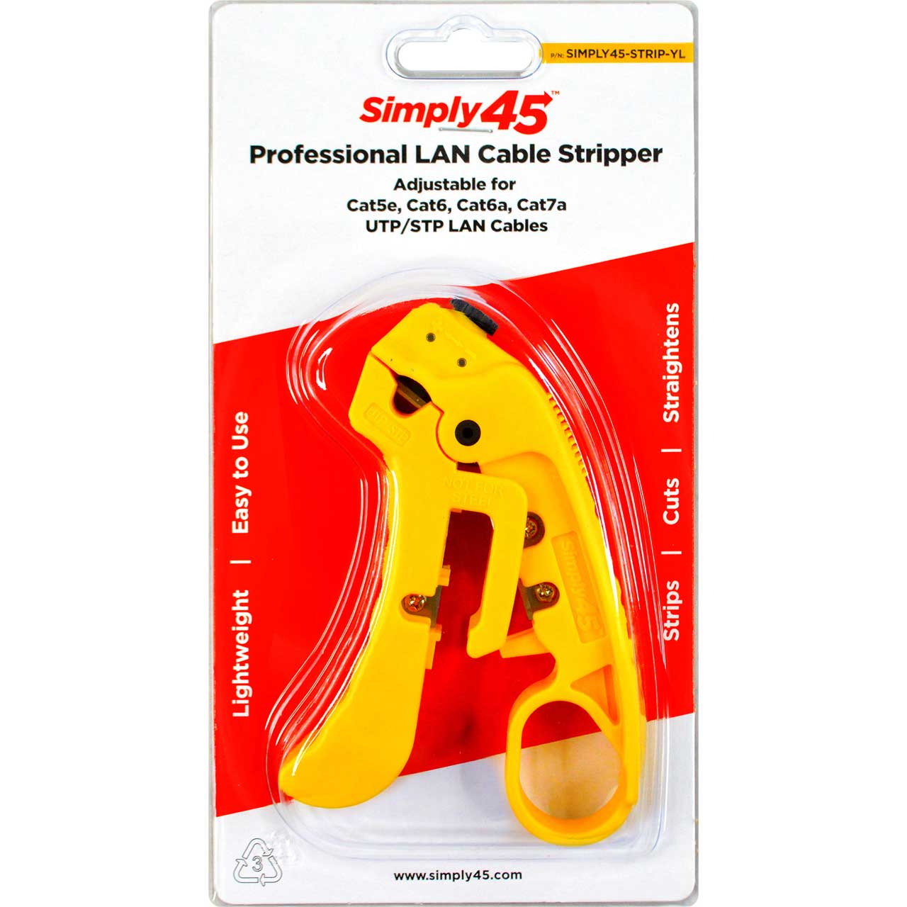 Simply45 S45-S01YL Professional Adjustable LAN Cable Stripper & Cutter - For Shielded & Unshielded Cat7a/6a/6/5e UTP/STP. Includes Wire Straigthener- Yellow- 1Ea/Blister