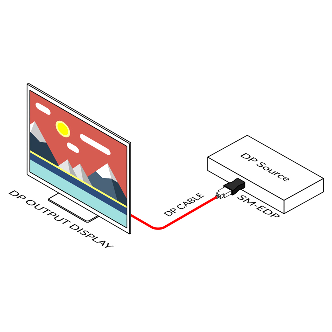 The Smart-AVI SM-EDP is a Displayport EDID Emulator that captures and stores a monitor's EDID so the source device always detects the correct display capabilities. It supports DisplayPort 1.1/1.2 and resolutions up to 3840x2160 @ 30Hz, and draws power directly from the DisplayPort source - no external power required!