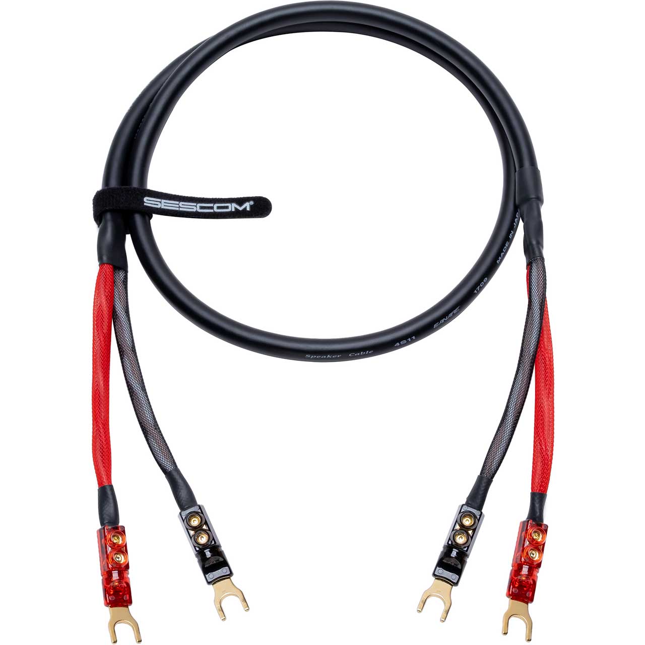 High-fidelity performance? Yup, we've got you covered! Sescom's SC4S11 Series Speaker Cables bring audiophile performance to a completely different level. Each handcrafted work of art features 24 Karat gold plated connectors bound to super-flexible Canare 4S11 Star Quad speaker wire with 1 foot fanouts swaddled in Techflex tubing. It doesn't get any better than this!