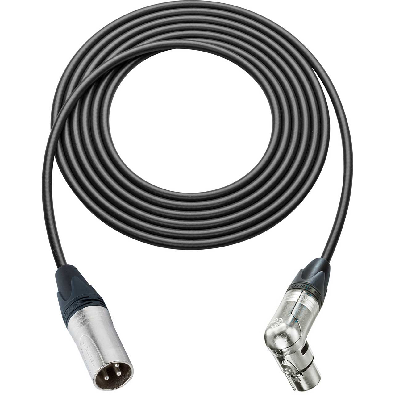 World's Finest Canare Star-Quad 3-Pin XLR Male to 3-Pin Right Angle XLR Female Microphone Cables. Cables are built by Sescom with Canare's premier L-4E6S Star-Quad Microphone cable and the highest quality connectors from Neutrik, Connectronics & Switchcraft.