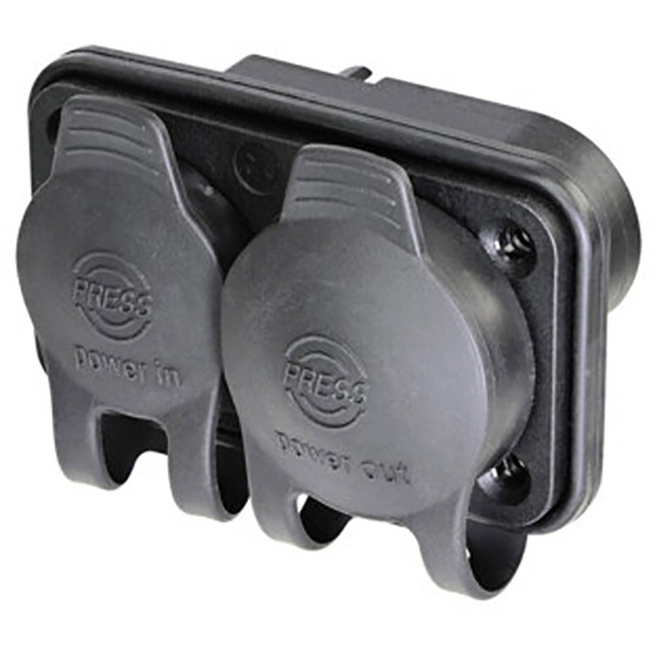 The rubber sealing cover SCNAC-04 with double caps (power-in/power-out) protects the powerCON TRUE1 TOP chassis connectors NAC3PX-TOP from dust and water according to protection class IP 65. User friendly and easy to assemble, its compact frame allows for high packing density.