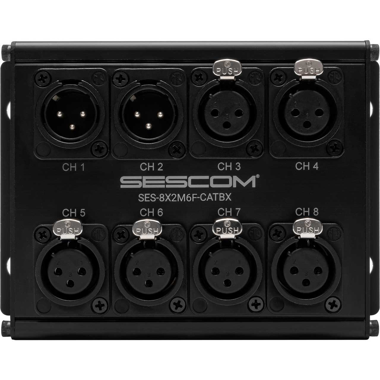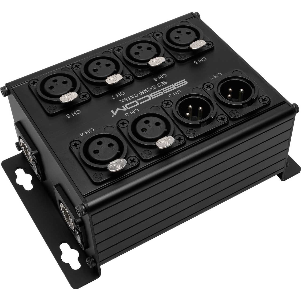Sescom SES-8X2M6F-CATBX 8 Channel Passive Balanced Audio Adapter Box over CAT 5/6/7 - 2 RJ45 to 2 Male & 6 Female XLRs