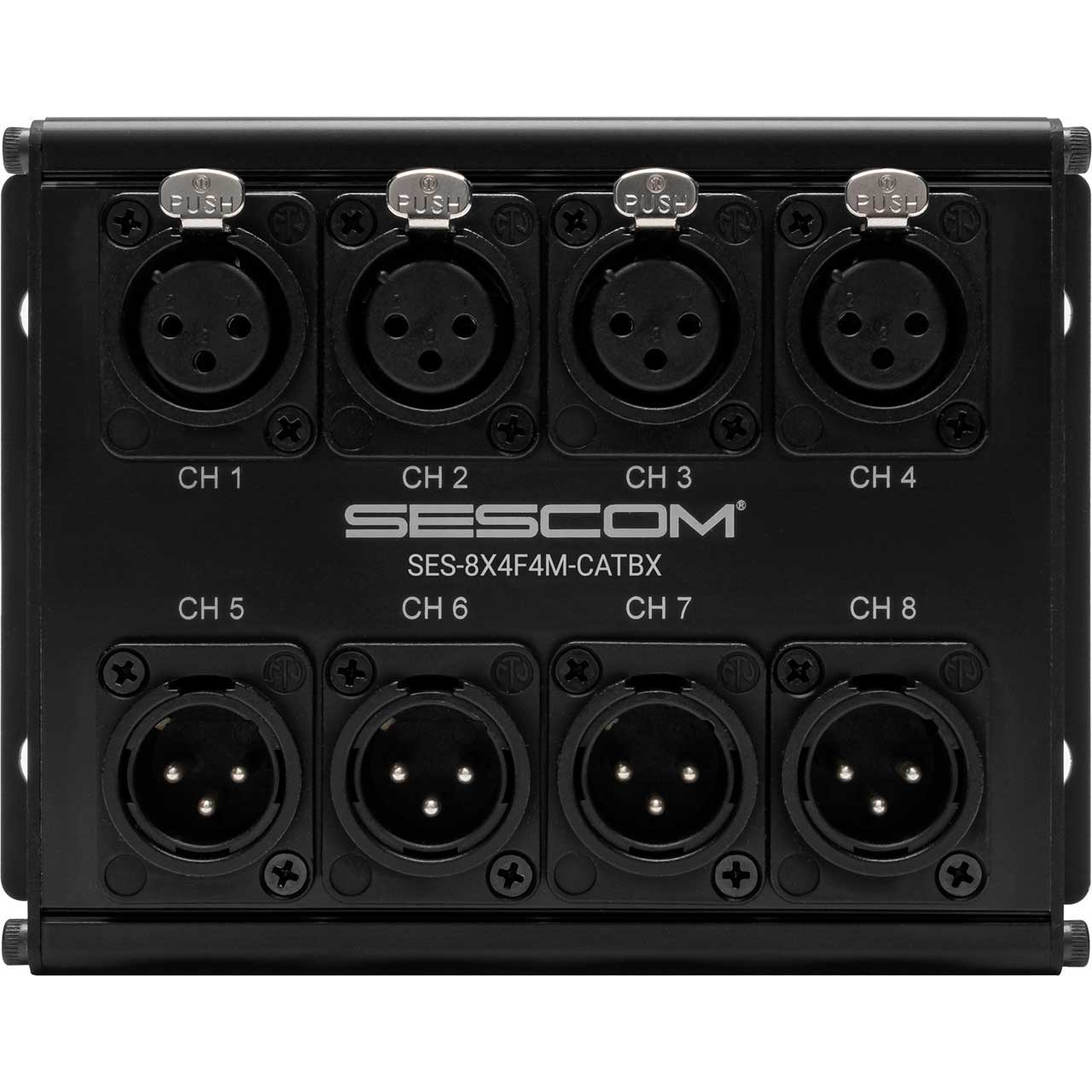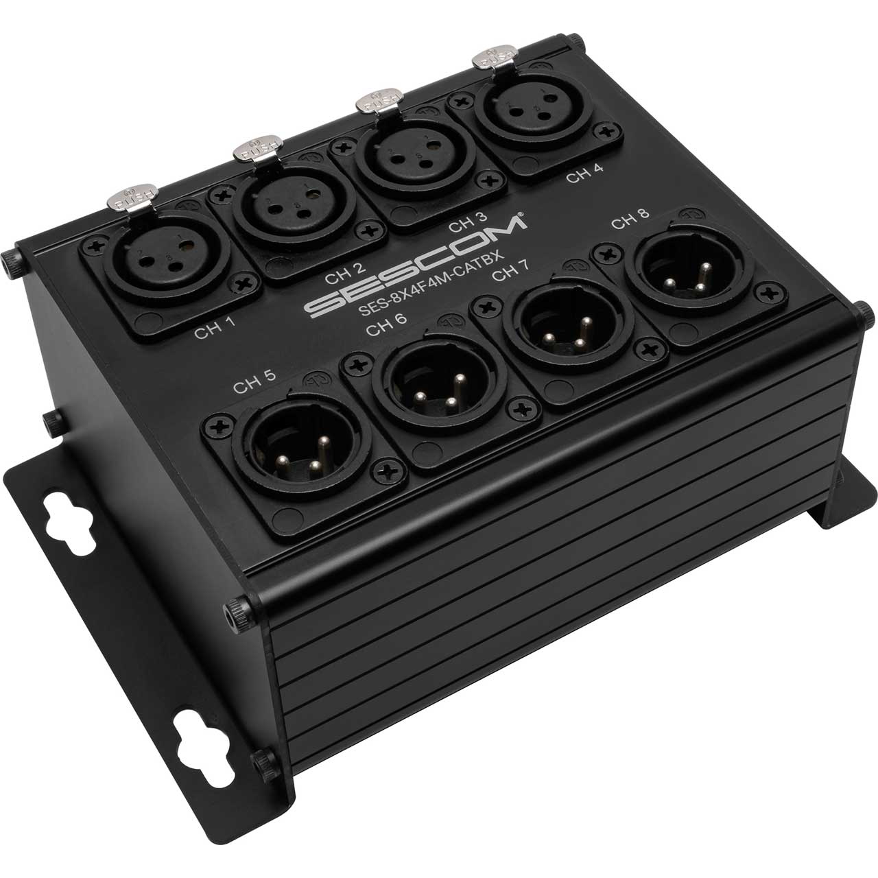 Sescom SES-8X4F4M-CATBX 8 Channel Passive Balanced Audio Adapter Box over CAT 5/6/7 - 2 RJ45 to 4 Female & 4 Male XLRs