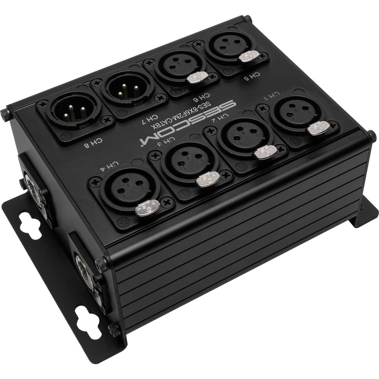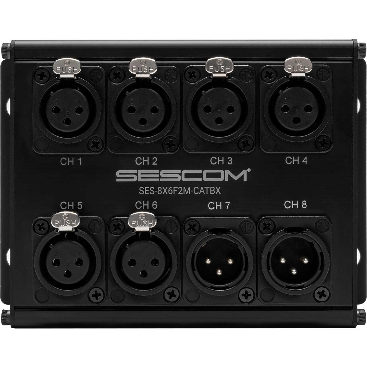 Sescom SES-8X6F2M-CATBX 8 Channel Passive Balanced Audio Adapter Box over CAT 5/6/7 - 2 RJ45 to 6 Female & 2 Male XLRs