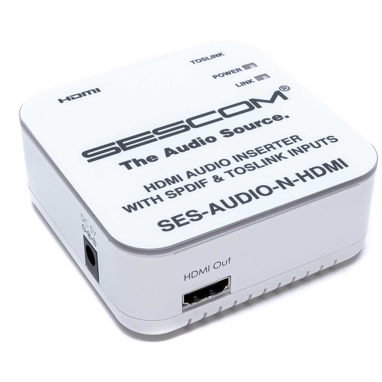 Insert an external audio signal into an HDMI or DVI signal path with the Sescom SES-AUDIO-N-HDMI Audio Inserter. Using the Audio IN Select feature, switch among three different audio input options: HDMI, Optical, and L/R Analog. Insert stereo and multi-channel surround sound signals while extending the HDMI signal.