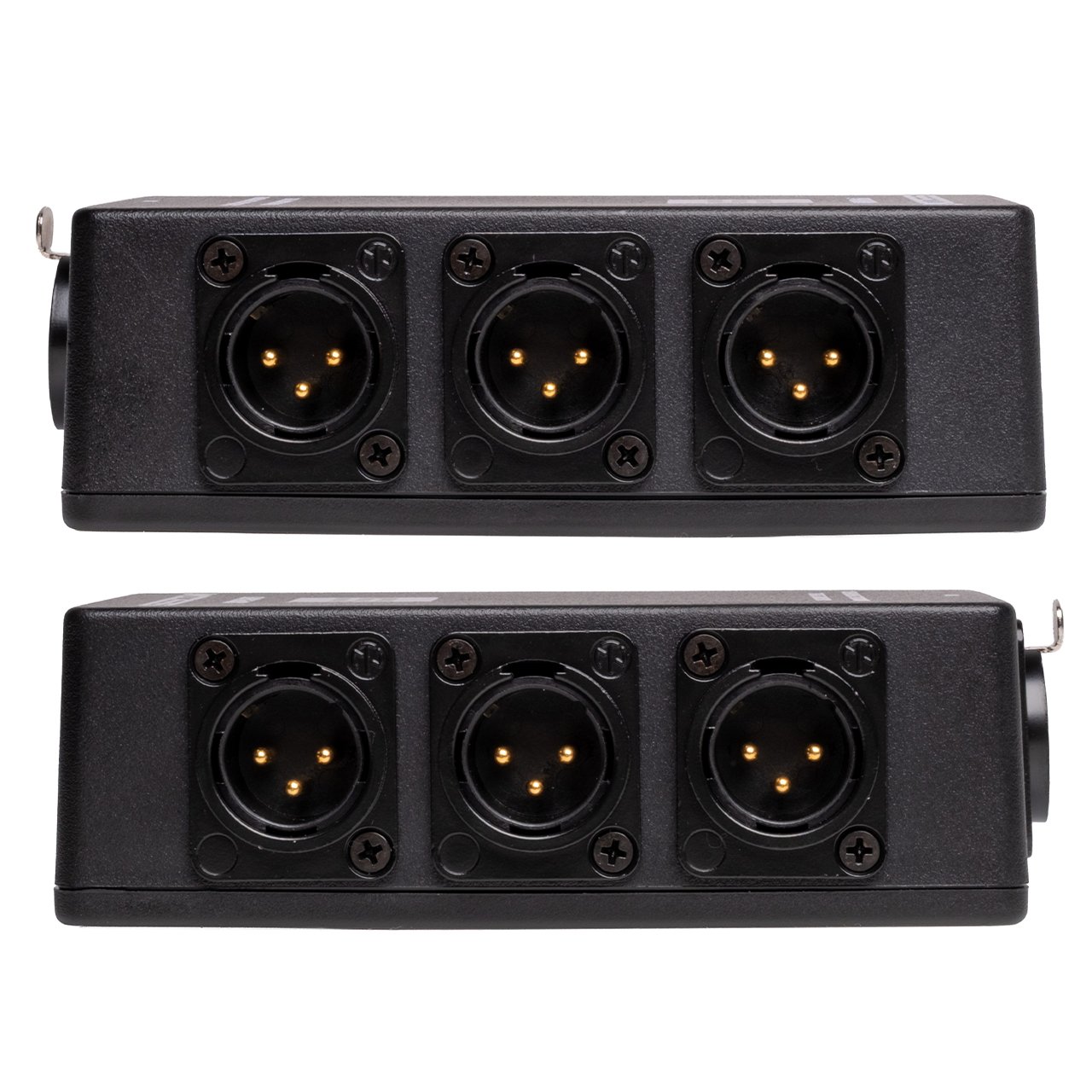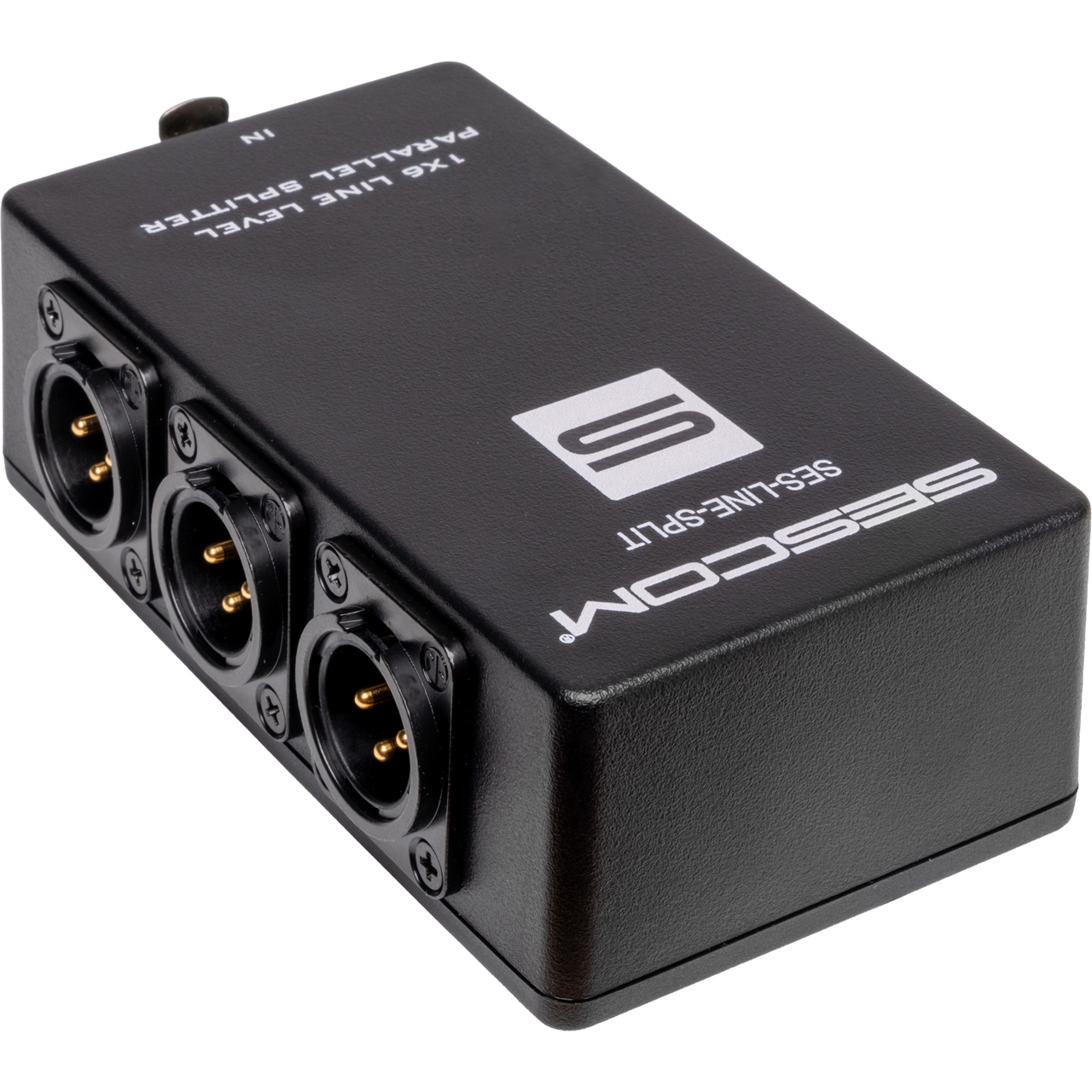 The Sescom LINE-SPLIT is a passive audio distribution tool that splits a single line-level XLR input into six separate line-level outputs without compromising signal quality. It offers great channel isolation, low distortion, strong common-mode rejection, and minimal crosstalk. It is housed in a sturdy ABS plastic casing, making it well-suited for use in various audio settings.