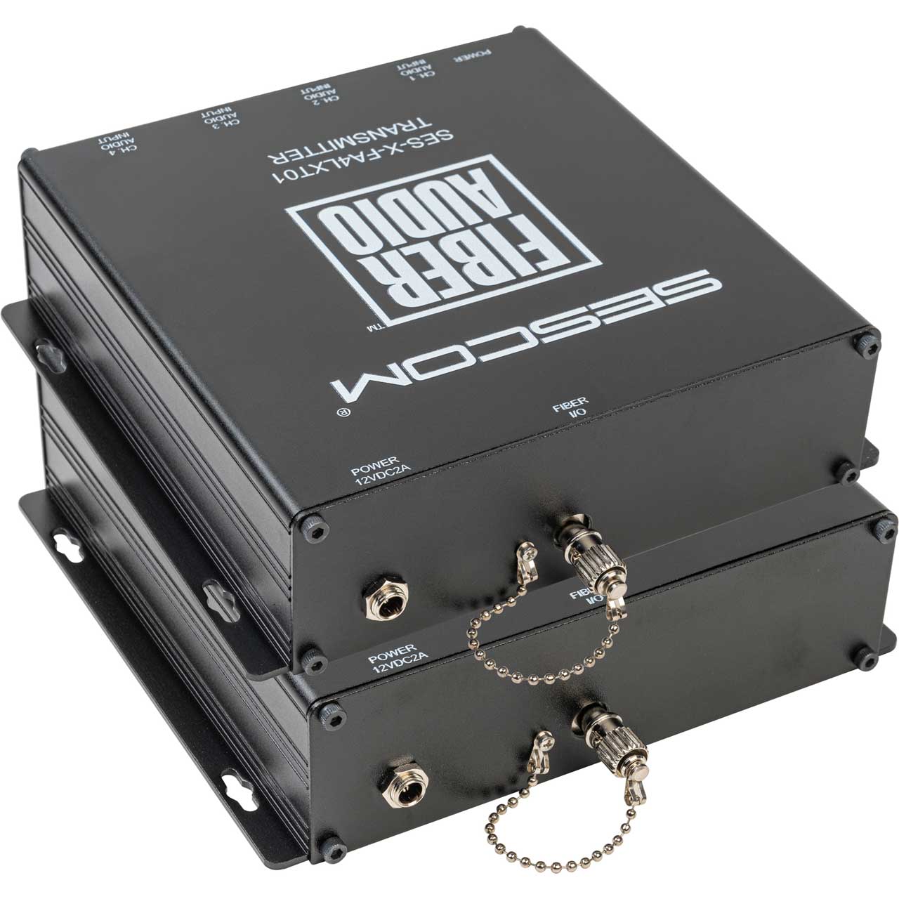 The cost effective, long-haul solution for sending 4-Channels of XLR balanced line level audio over a single fiber cable! The Sescom X-FA4LXT01 sends Balanced and Un-balanced 24 Bit PCM - AES3 encoded line level audio signals over multimode or single mode optical fiber at distances up to 1600 feet (multimode) or up to 12.4 miles (single mode). Sescom's new and improved X-FA4 design eliminates potential crosstalk issues.