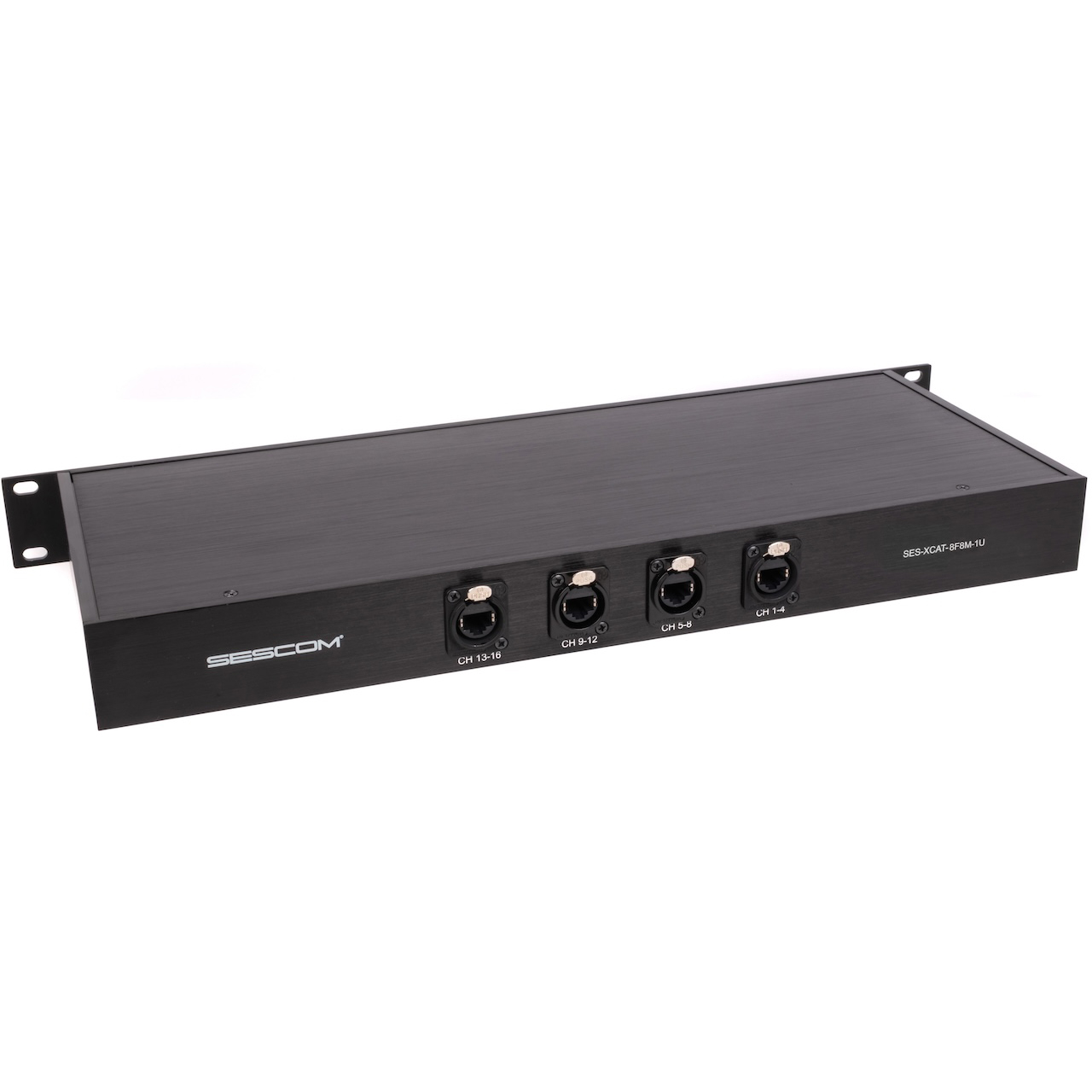 The Sescom XCAT-8F8M is a rackmountable breakout box for adapting up to 8 Female XLR and 8 Male (3-pin) channels over four Neutrik etherCON RJ45 jacks allowing users to simplify audio routing by replacing bulky snakes with compact, efficient Cat runs.