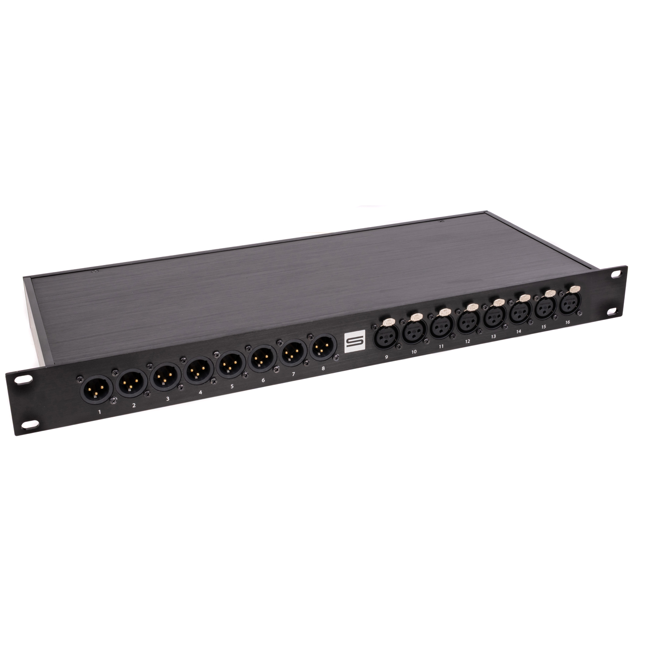 The XCAT-8M8F is wired to AES72/Type 20 standards and will support 48V phantom power when shielded category cable is used. The front and rear of the panels are marked by channel number for quick identification when patching. This rackmount breakout box combines every set of 4 front mounted XLR channels to a single RJ45 rear output. It is fully passive, requiring no power, and is built with high quality components ensuring your audio passes through without signal distortion.