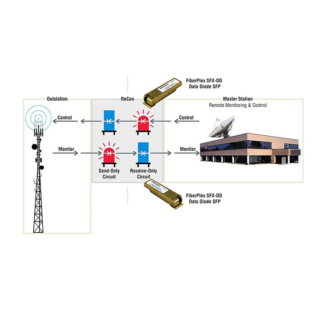 FiberPlex SFX-1DD Data Diode SFP Modules for cyber security, with 1-gigabit optics, transmit data in one direction only without the possibility for a return path, making them ideal for applications such as file transfer, real-time data streaming, database replication, and remote monitoring.