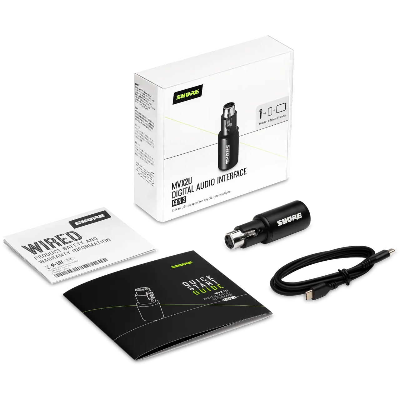 MVX2U Gen 2 is a next-generation, single-channel XLR-to-USB interface that delivers studio-quality audio anywhere. Built for streamers, podcasters, and mobile creators, it is fully compatible with phones and tablets and is USB-C bus-powered - no external supply - so customers can record or go live from desktop, phone, or tablet with a clean, uncluttered cable setup. Onboard audio processing - Auto Level Mode, Realtime Denoiser, and Digital Popper Stopper - runs with zero-latency to keep sound consistent across devices and imperfect spaces. Users can even take control of their sound with Shure MOTIV apps for desktop, mobile, and tablet. Fine-tuning tone, EQ, compression, limiter, and Monitor Mix, managing presets, and lock repeatable workflows. Compact, mobile-friendly, and easy to set up - to create with great sound, anywhere.
