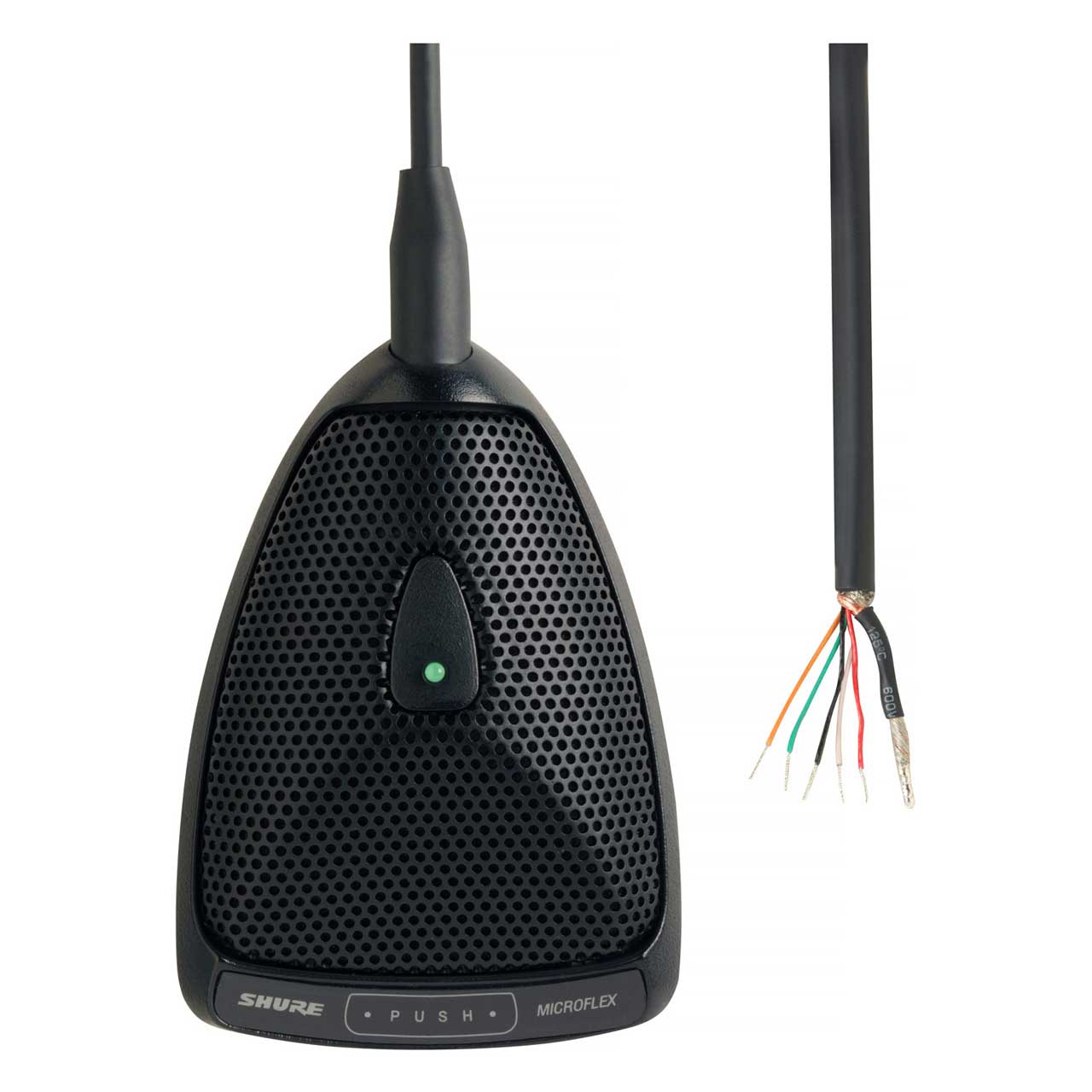 The MX392BE/O Microflex® Wired Boundary Microphone from Shure is equipped with features like programmable, silent membrane switches, logic inputs and outputs, and green LED indicators. The high-quality solution for a range of applications such as altars, boardrooms and distance learning centers, Microflex Boundary microphones feature interchangeable condenser cartridges.