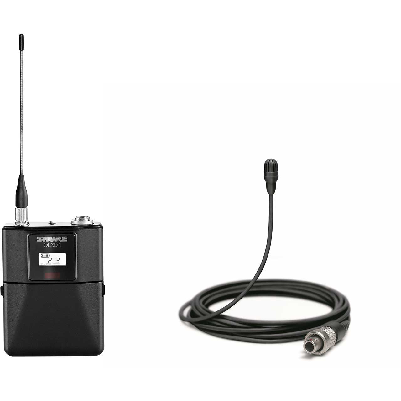 • 1x Shure QLXD1 Bodypack Transmitter and TwinPlex Low Sensitivity Black Lavalier Mic Kit - 534-598MHz