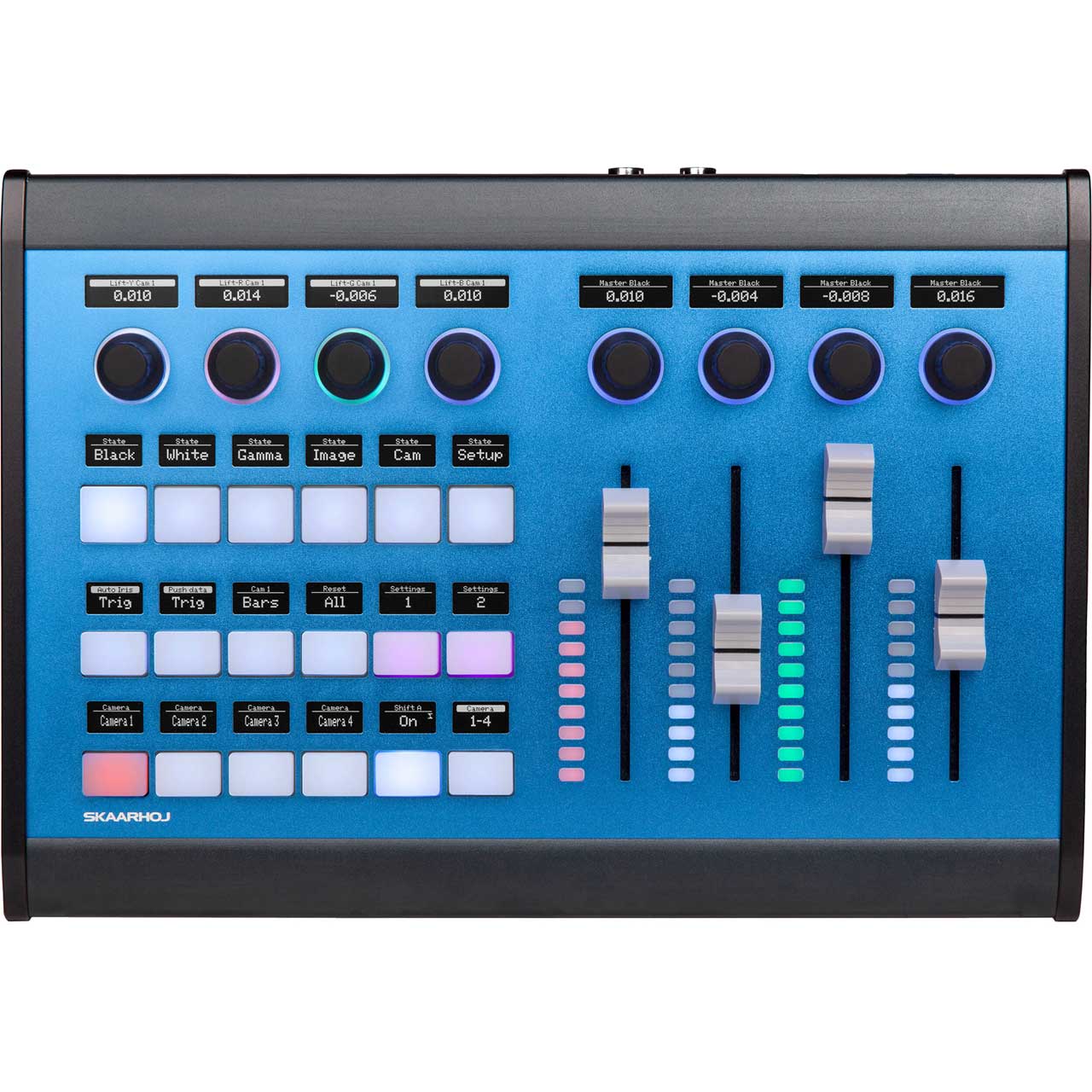 Skaarhoj Color-Fly-S-V2 is your uncompromising multi camera RCP bringing you innovative iris control with motorized faders. You get the tactile position feedback of the classic iris joystick but can easily manage 4,8 or 12 cameras from the same compact panel.