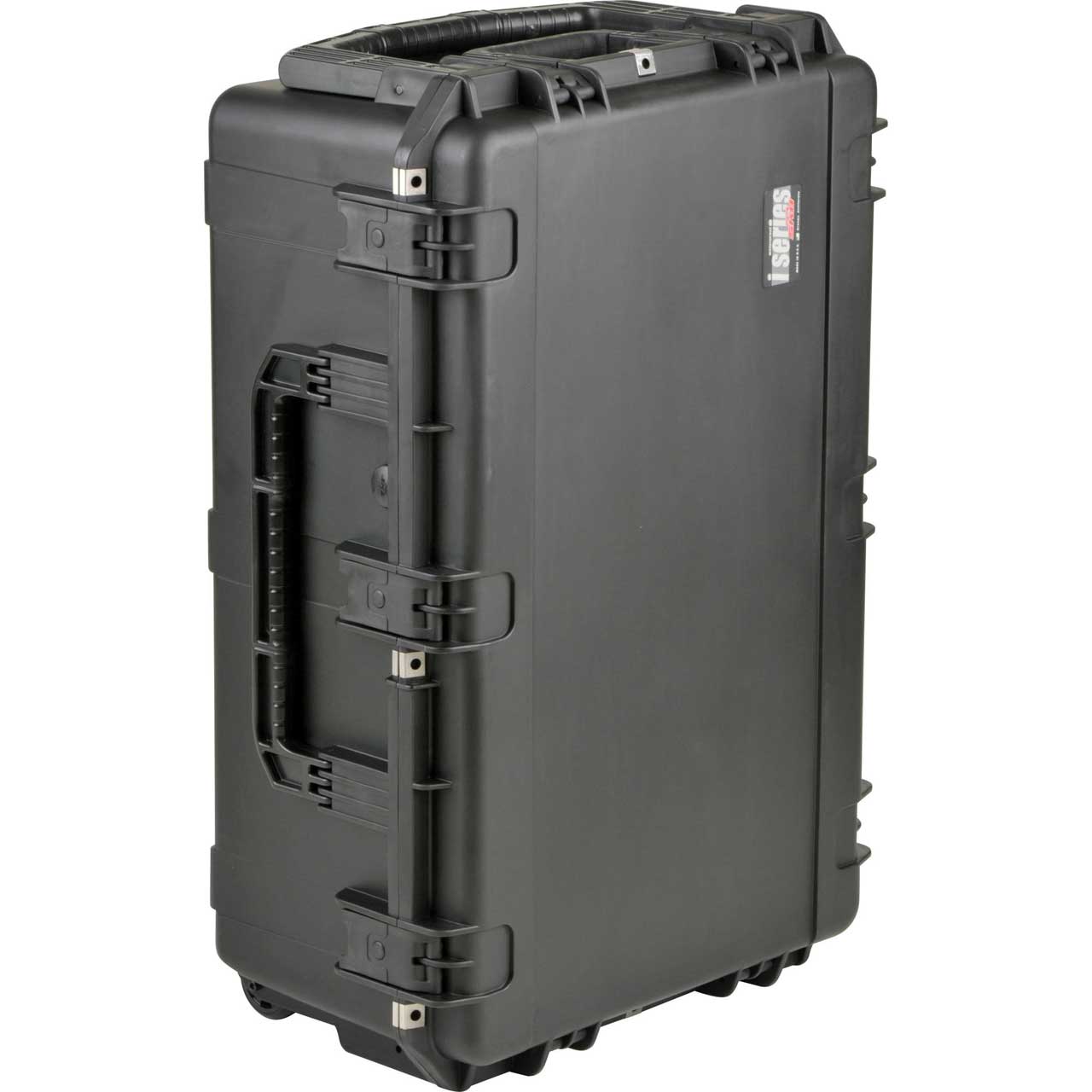 The 3I-3019-12BC Pro Audio Utility Case with cubed foam also features three protected hinges with stainless steel pins to provide lid stability, SKB’s “trigger release” latch system can be retrofitted with TSA recognized and accepted locks, an oversized double grip carrying handle to balance a heavy load, and comfortable, oversized snap-down rubber over-molded cushion grip handles on each end for a two person carry or transport. The heavy-duty oversized handle and wide set double wheels offer the perfect solution to comfortable and secure protection of pro audio equipment, camera / video gear, lenses or technical equipment.