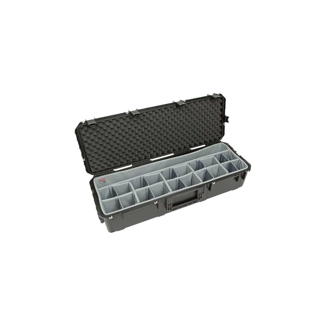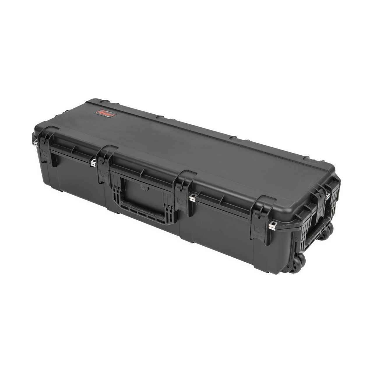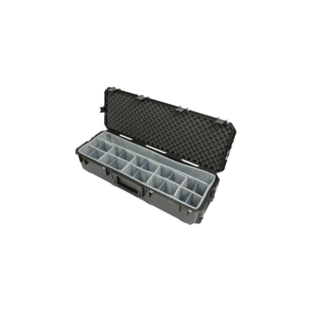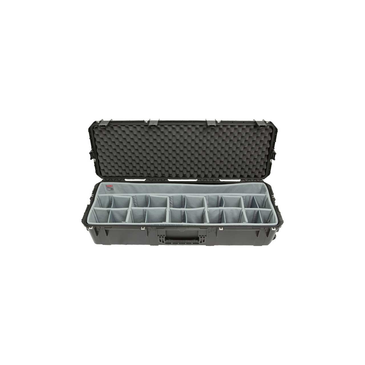The 3i-4414-10DT is watertight and dustproof, and features a deluxe closed cell fitted foam liner with (4) heavy duty hinged dividers, and (12) padded sub-dividers, and (1) heavy duty main divider, all of which are Nylex-wrapped and designed with heavy duty hook-and-loop tabs to create the perfect fit for lighting stands and other accessories. This case also features built-in wheels and a convenient handle for easy transport.