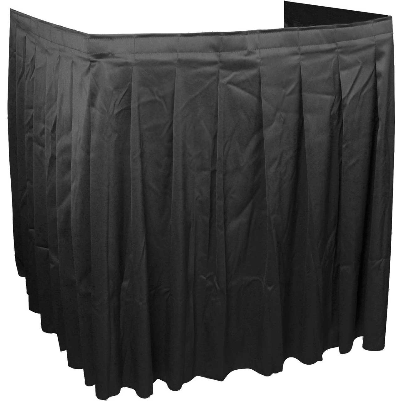 Look professional in all of your important presentations by covering up carts, stands and tables in black twill presentation fabric. Includes 25 adhesive Velcro tabs for easy set up and knock down. Use over and over again. Common sizes listed - please measure your particular cart for accuracy. Note: 3 sides plus short return is recommended when equipment is used on lower shelves and needs ventilation. 'S' suffix on part number indicates Shirred Skirt. 'A' suffix on part number indicates Accordion Style Skirt.