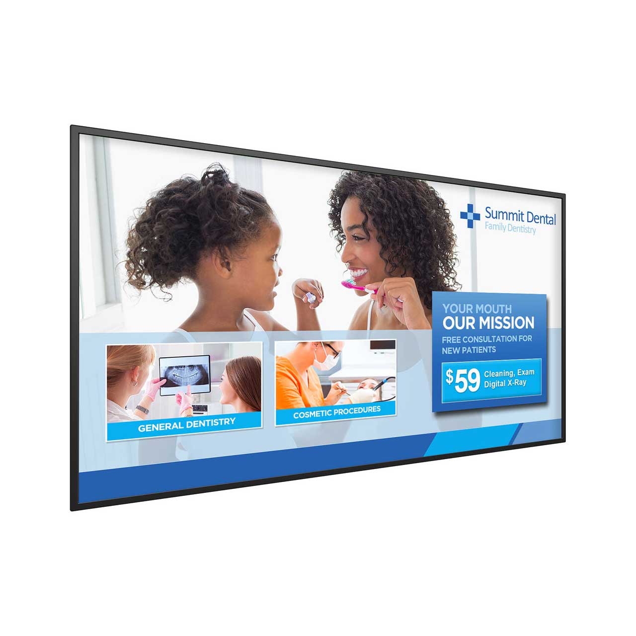 SL4351 is a 43" LCD display for digital signage that incorporates media playing, a sleek design, and commercial functionality into an affordable 43" digital signage solution. Its elegant design with a narrow, logo-free bezel and ultra-slim profile provide the ideal display solution for digital signage applications in retail stores, restaurants, medical offices, corporate meeting areas and hospitality.