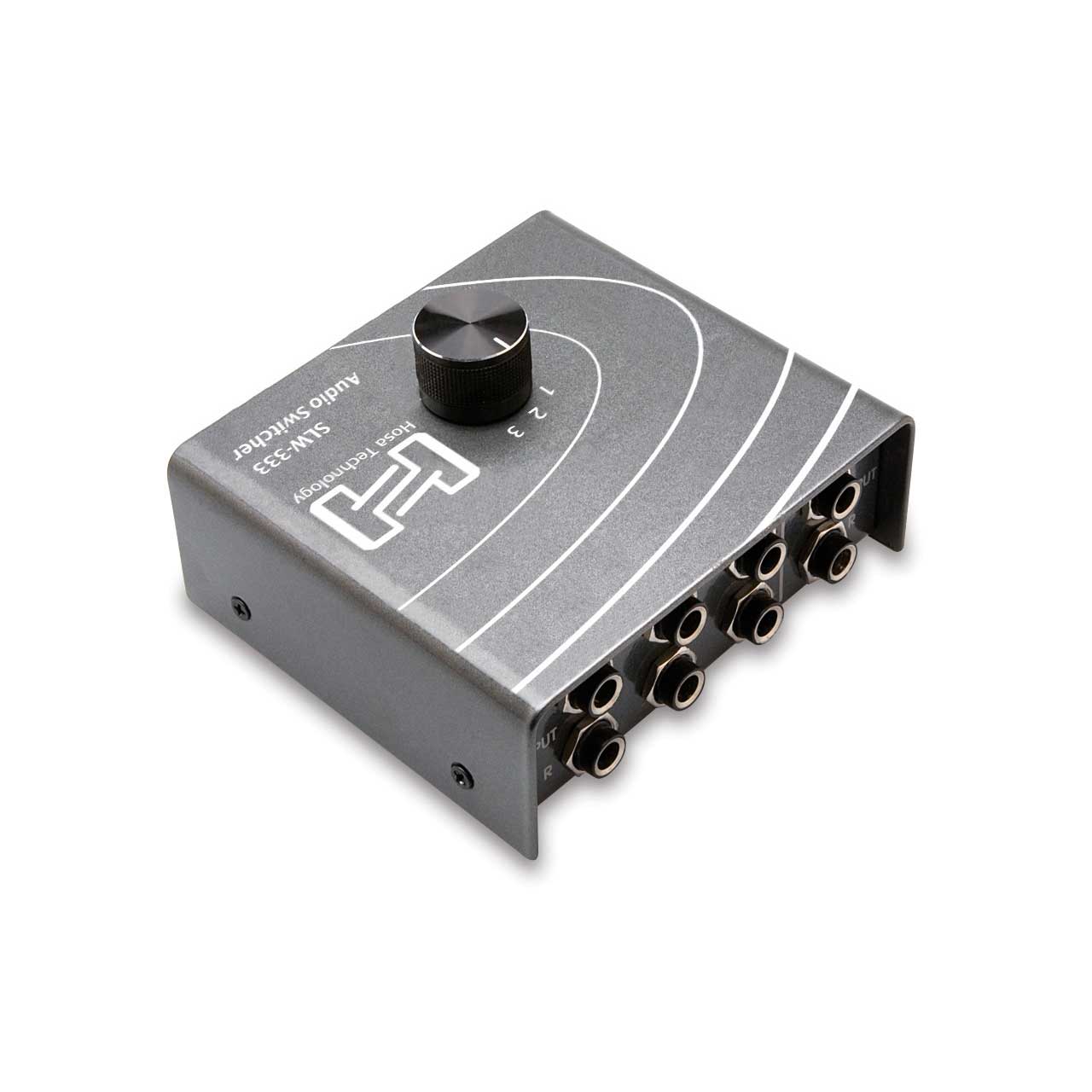 Switch back and forth, noiselessly, between up to three powered monitors. The versatile design has 1 IN (source) and 3 OUT (destination), but can be used in reverse to give you 3 IN (multiple sources) to 1 OUT (a single destination). The SLW-33 provides 1/4" Tip-Ring-Sleeve (TRS) phone jacks for easy connecting. No power required. Rugged metal enclosure.
