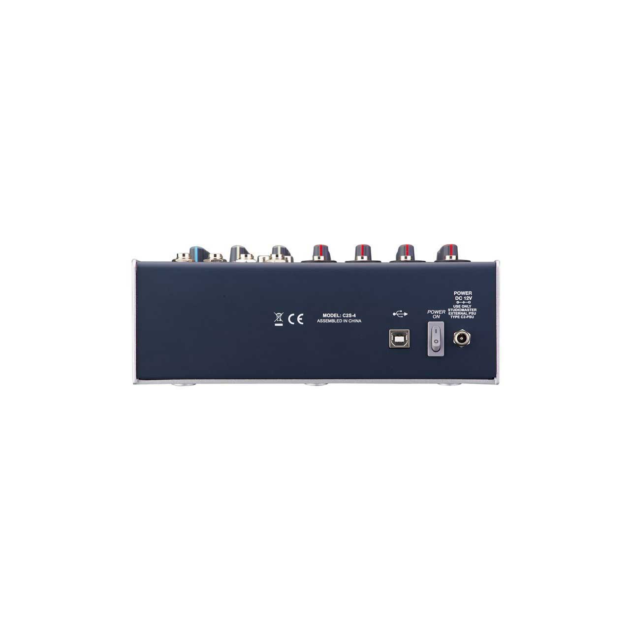 All units feature 2 band EQ on all channels, auxiliary for external effects processors, pan/balance control, and input gain and level controls. The output section is equally comprehensive with stereo outputs, playback/record on both RCA and USB (on C2S models), bar graph metering and headphone output .