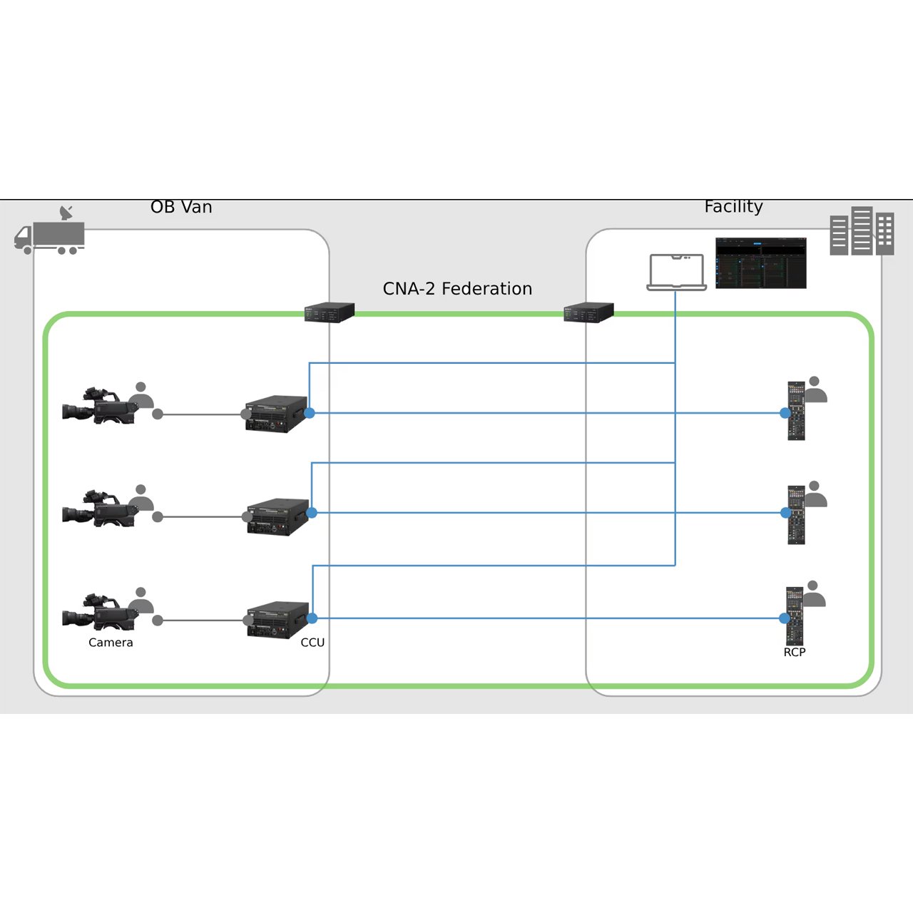 Get your live camera systems ready for remote and distributed production, connecting multiple units to take on the most ambitious multi-camera projects. With the Sony CNA-2 camera control network adapter you can run productions from your chosen connected location to get the most out of your system cameras, visualize grouping functions and settings for SR-Live and Networked Live!
