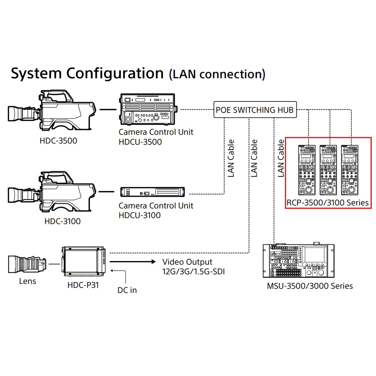 It is possible to connect it using a LAN cable, in addition to a CCA-5 cable. The system can be built using a 1000Base-T LAN connection with PoE support.