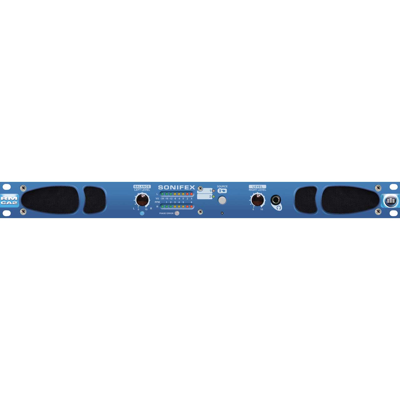 The RM-CA2 is a 1U rack-mount unit offering quality loudspeaker monitoring and 2 channel metering of two stereo analogue audio sources. Input 1 has stereo balanced NeutrikT XLRs and Input 2 has both stereo balanced NeutrikT XLRs and stereo unbalanced RCA phono connectors. The balanced analogue inputs can be wired unbalanced if required.