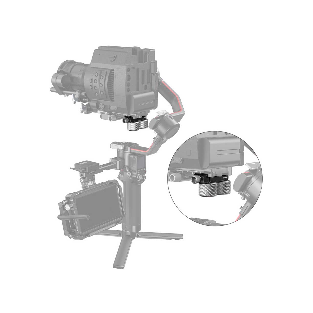 SmallRig Counterweight Kit for DJI RS 2/RSC 2 & Selected ZHIYUN Gimbals 3125 is designed to balance cameras with long-lens setups on gimbals by mounting counterweights behind your camera. It clamps onto camera plate via thumbscrew, and is compatible with popular stabilizers on the market such as DJI Ronin S, RS 2/RSC 2, Zhiyun Crane 2S / 3S / Weebill-S, Moza Air2 / AirCross, RS 3 / RS 3 Pro, etc. There are multiple 1/4"-20 threaded holes at the bottom, and counterweights can be stacked to meet the balance request in different scenarios. Small shape is convenient for storage, and with strong versatility.