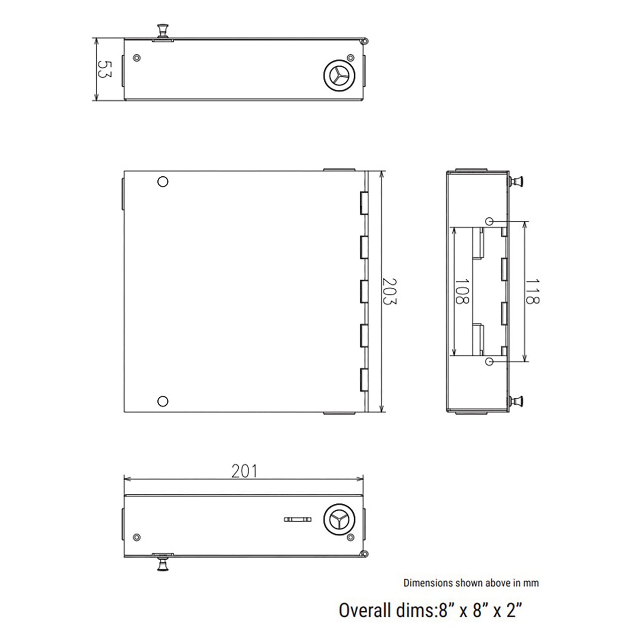 The Cleerline SSF-SWM-SOLID-NL-E1 is an extra small, empty wall mount enclosure. Fits 1 LGX adapter plate. Cleerline Wall Metal Enclosure units are designed to support patching and splicing in one unit. The enclosure has 1 adapter plate position, allowing for a wide variety of fiber termination connector types. The enclosure will house inline adapters, pigtails and splice sleeves. This enclosure features a 3/4" knockout for maximum installation flexibility. The enclosure is fastened via secure plunger-and-grommet type closures.