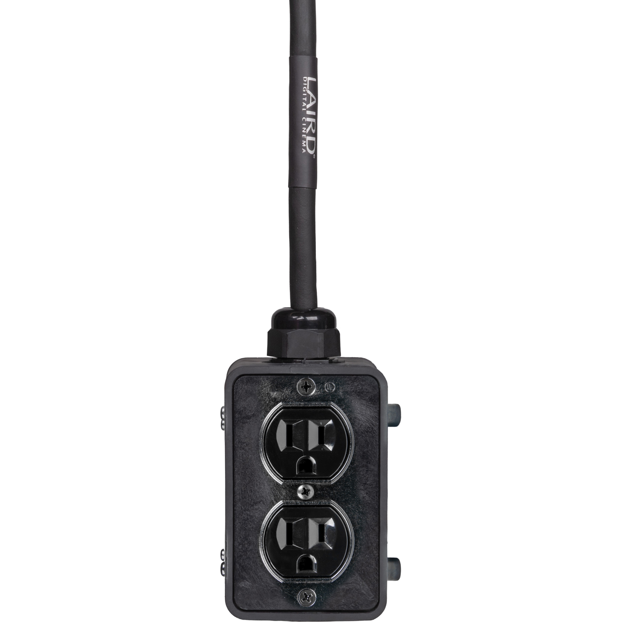 The Laird SSPC-NC series AC power extension cables are engineered to deliver reliable, high-performance power solutions in the toughest environments. Featuring rugged SJOOW Laird PWR-12/3-TP cable paired with a fully insulated, heavy-duty Leviton rubberized two-gang electrical box, these cables resist shock, impact, and corrosion - ensuring durability you can trust. Perfect for movie and TV production, equipment rentals, theaters, concert tours, live events, and industrial maintenance, the SSPC-NC series offers versatile power options with multiple standard lengths and both 15-amp and 20-amp configurations to meet your exact needs.