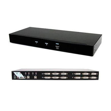 The Quad DVI KVM switch allows you to switch back and forth between 2 multi DVI PCs at the touch of a button, while maintaining professional-level video quality on all monitors at resolutions up to 2560x1600. The quad DVI switch also features an integrated USB hub port that allows USB 2.0 peripherals to be shared between attached systems - eliminating duplicate peripheral costs, and offering the convenience of sharing stored data between PCs.