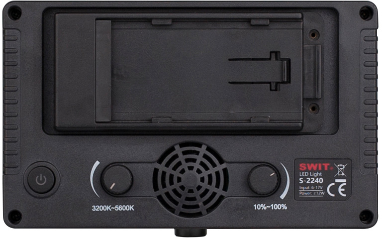 The SWIT S-2240F is a 5.6" x 3.6" on-camera LED light featuring surface mounted LED technology, including 60pcs ultra-bright SMD LEDs, suitable for wide area on-camera lighting. The provided magnetic diffuser cover generates a symmetrical, soft and glareless area of light for close interview and professional film lighting. The SMD LED of S-2240F has a 120° wide beam angle, and its “half-declined" beam angle can reach up to 68°. Each SMD LED of S-2240F is packaged with both 5600K and 3200K LEDs, thus the output color temperature can be continuously adjusted between 3200K and 5600K. As the S-2240F offers a super-high CRI of 92 and TLCI of 97, you will not lose the original color of the object. It accepts 6-17V wide voltage input, as well as SWIT S-7004F snap-on DV battery plate that is compatible with SONY NP-F970/770, and SWIT S-8972, S-8970 batteries.