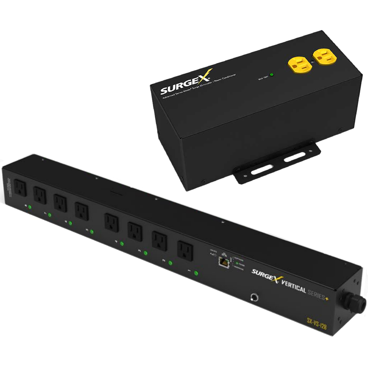 The included SurgeX SA-15 15A 2-Outlet Standalone power surge protector and conditioner device safeguards mission-critical equipment in environments outside of a rack. Their compact design easily fits along, behind, or near equipment, takes up minimal space. They are perfect for AV, surveillance, and monitoring systems.