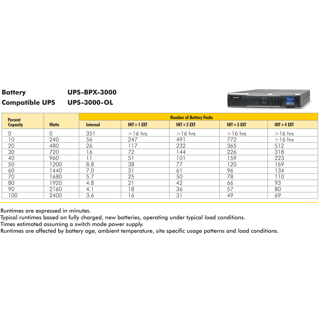 For critical systems that require online battery backup, our UPS-1000-OL, UPS-2000-OL, and UPS-3000-OL solutions each deliver network grade power through double-conversion technology. They offer the perfect standalone backup solution for sensitive audio video systems, critical business servers, point of sale equipment, telephone, and data networks equipment that demand prolonged runtimes of 1.5 hours or greater. All three solutions provide extended scalable runtimes of up to 18 hours via self-charging extended battery packs and easily replaceable battery trays.