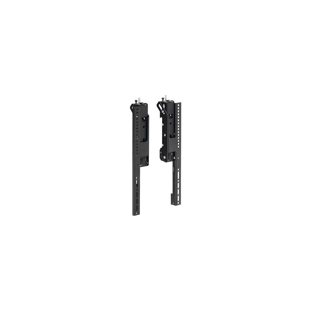 The Symmetry Series is an easy to use configurable flat panel display mounting solution, designed to provide easy installation and adjustment. The display interface consists of two main components: an interface bar (horizontal fitment) and a set of 2 display brackets (vertical fitment). Multiple display bracket options are available, such as the fine-tune display brackets that offer 6-point (x,y,z) adjustments that are accessible from the top of each fine tune display bracket for precise bezel alignment. Another option is the non-adjustable display brackets with tilt, which offers an economical option. The display brackets click in place on the interface bar for quick and easy installation. The modular components are designed to reduce installation time by over 40% compared to traditional individual single display mounting systems. The Symmetry Series is one system that can be configured to fit a variety of digital signage needs, including video walls, transportation schedules and menu boards.