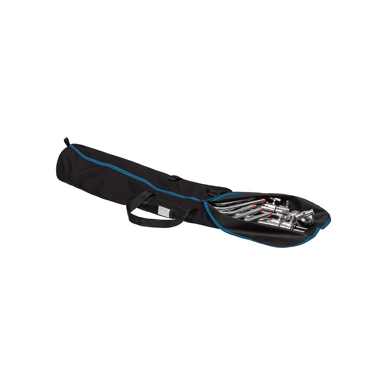 The easy way to transport lightstands, umbrellas, cables and even tripods. The strap goes all the way around the bag and can be carried over your shoulder or on your back. The zipper is full length, and there is a wood bottom liner to prevent damage from spiked legs. Comes with a small outside pocket for notes and accessories. Available in Gray and Basic Black.