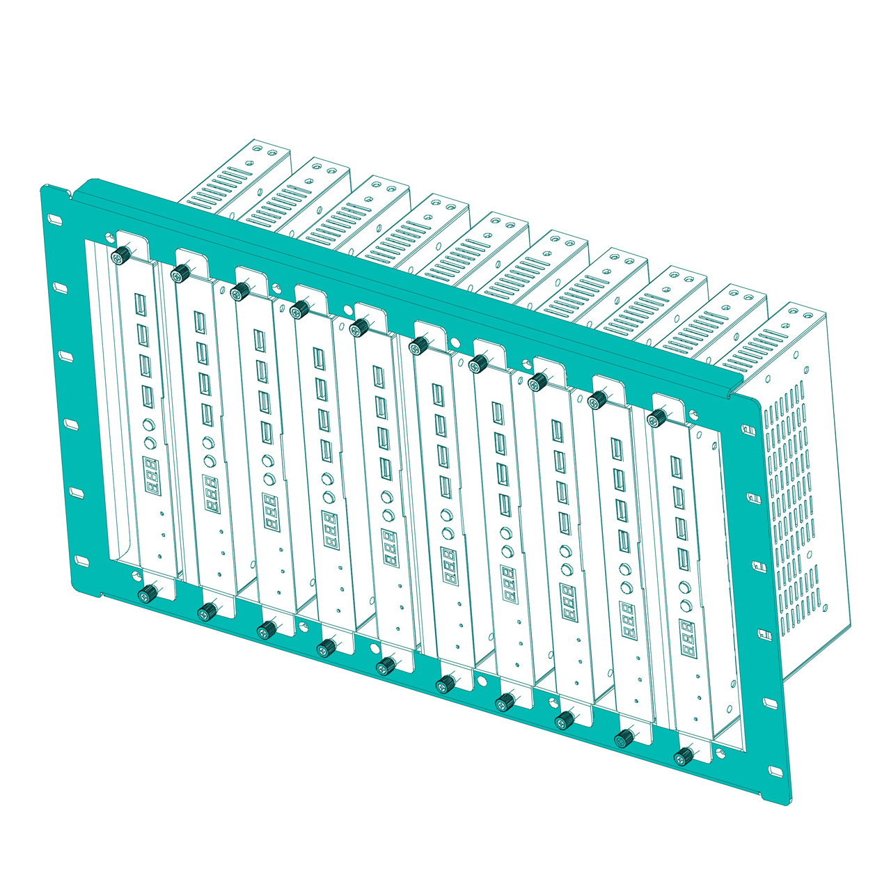 The Turtle AV TAV-CHAZYRACK6U is a 6RU Rack that holds any mix of ten Chazy transmitters or receivers.