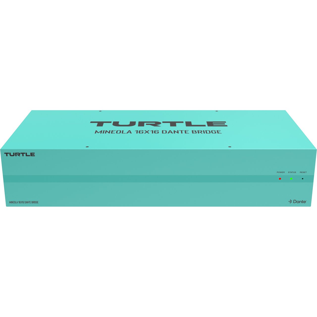 The Turtle AV TAV-MINEOLA16XLR is the perfect Dante-to-XLR bridging solution for setups requiring 16x inputs and 16x outputs. Designed to seamlessly connect digital and analog audio, it delivers reliable performance in a compact form. Perfect for live events, studios, or installations, the Mineola 16x16 provides pristine audio when you need it. All connectors are locking, with Neutrik etherCON on the dual network ports for reliable redundancy. Fully compatible with the entire Dante software suite, the Mineola 8x8 integrates seamlessly into live event production systems, including vMix, Vizrt Vectar, Vizrt TriCaster, OBS, and Telestream Wirecast. Designed for flexibility and performance, it’s the perfect choice for professional audio applications.