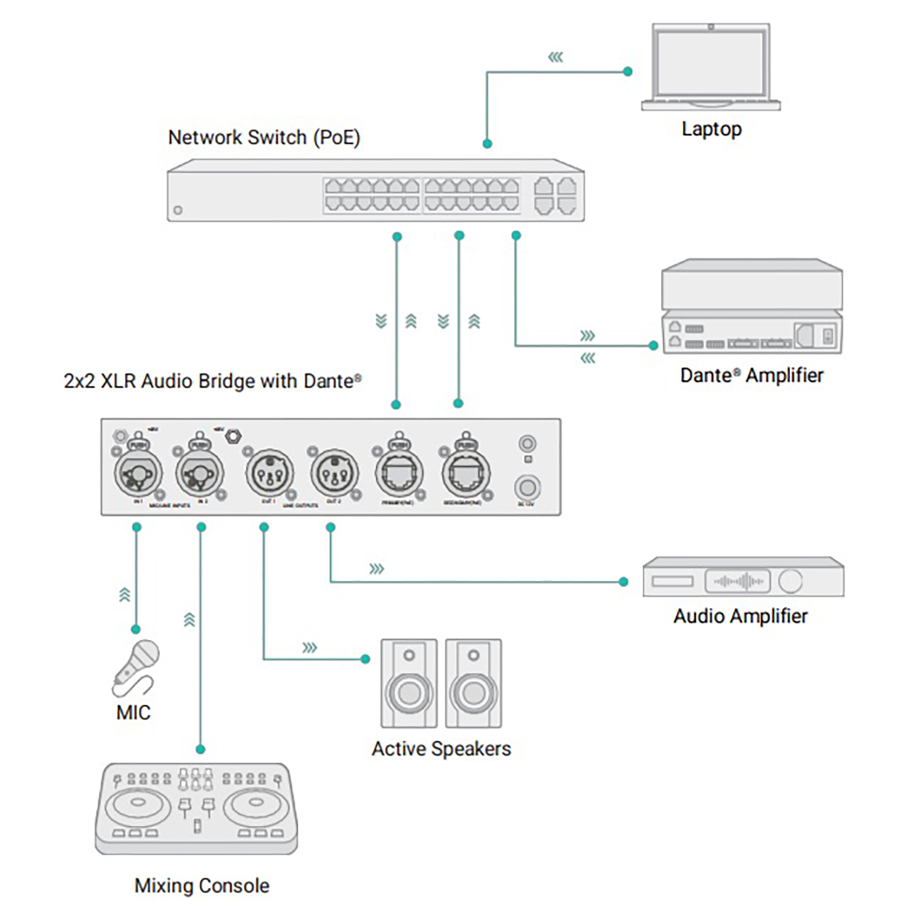 The Mineola audio bridges are housed in an all-metal chassis for maximum ruggedness. Painted in a distinct Turtle Aqua finish, this adapter looks great and is easily identified by users for its status as a pro audio bridge in your setup.