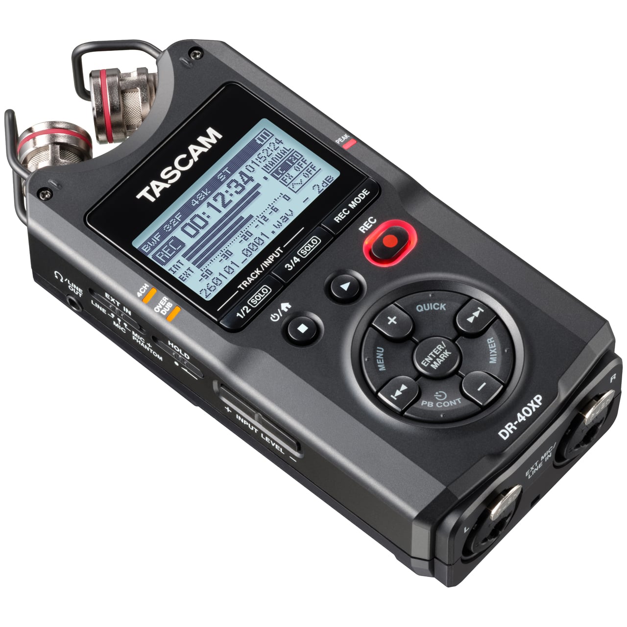The Tascam DR-40XP is a versatile 4-channel multi-track portable field recorder for musicians, video creators, and field recordists. Featuring adjustable stereo microphones, ultra-low noise HDDA mic preamps, XLR/TRS inputs with phantom power, and 32-bit float/96kHz recording, the DR-40XP delivers clean, clip-free audio in any environment. Long battery life and USB-C audio interface functionality make it ideal for recording and production.