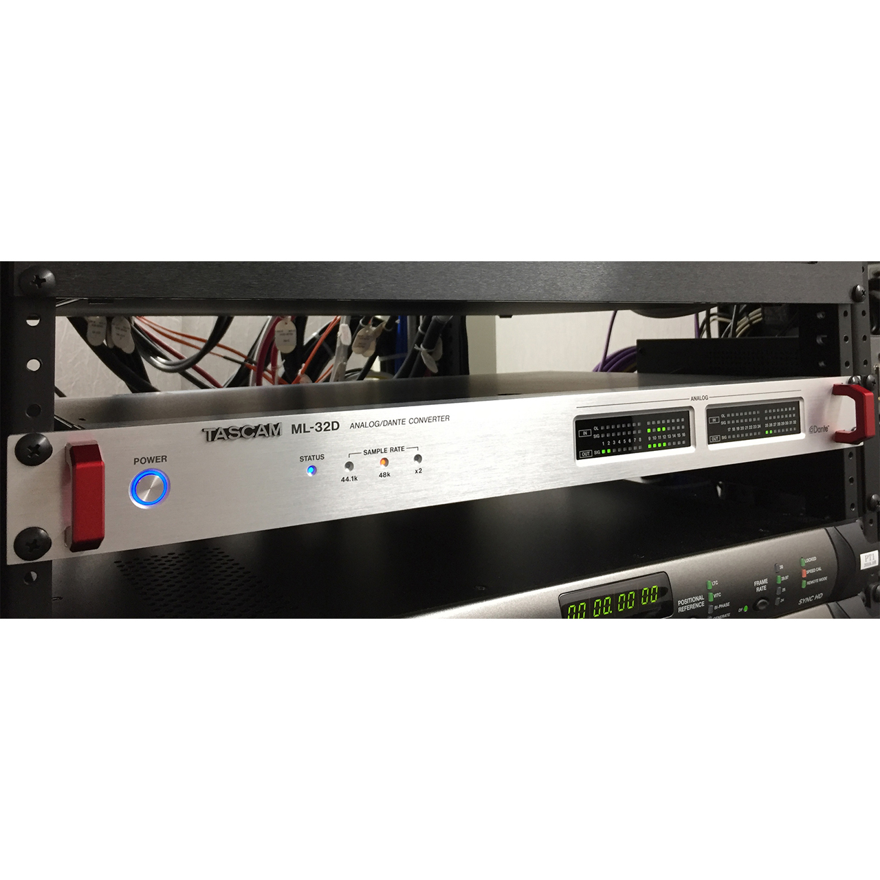 The TASCAM ML-32D is a professional Dante-focused converter made specifically to insert or extract analog audio into or out of a Dante (Digital Audio Network Through Ethernet) network using external breakout devices that utilize Sub-D format connectors.