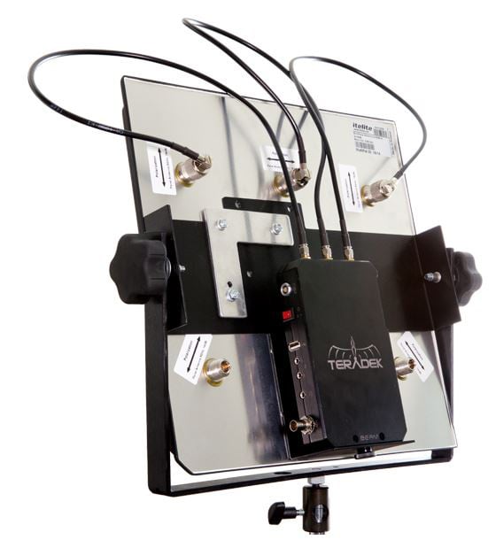 The Teradek Array is a 5GHz MIMO panel antenna designed for use with Beam, Bolt 600 and Bolt 2000 receivers. The Array offers a more resilient wireless transmission, especially in challenging RF conditions, but it will not increase range.