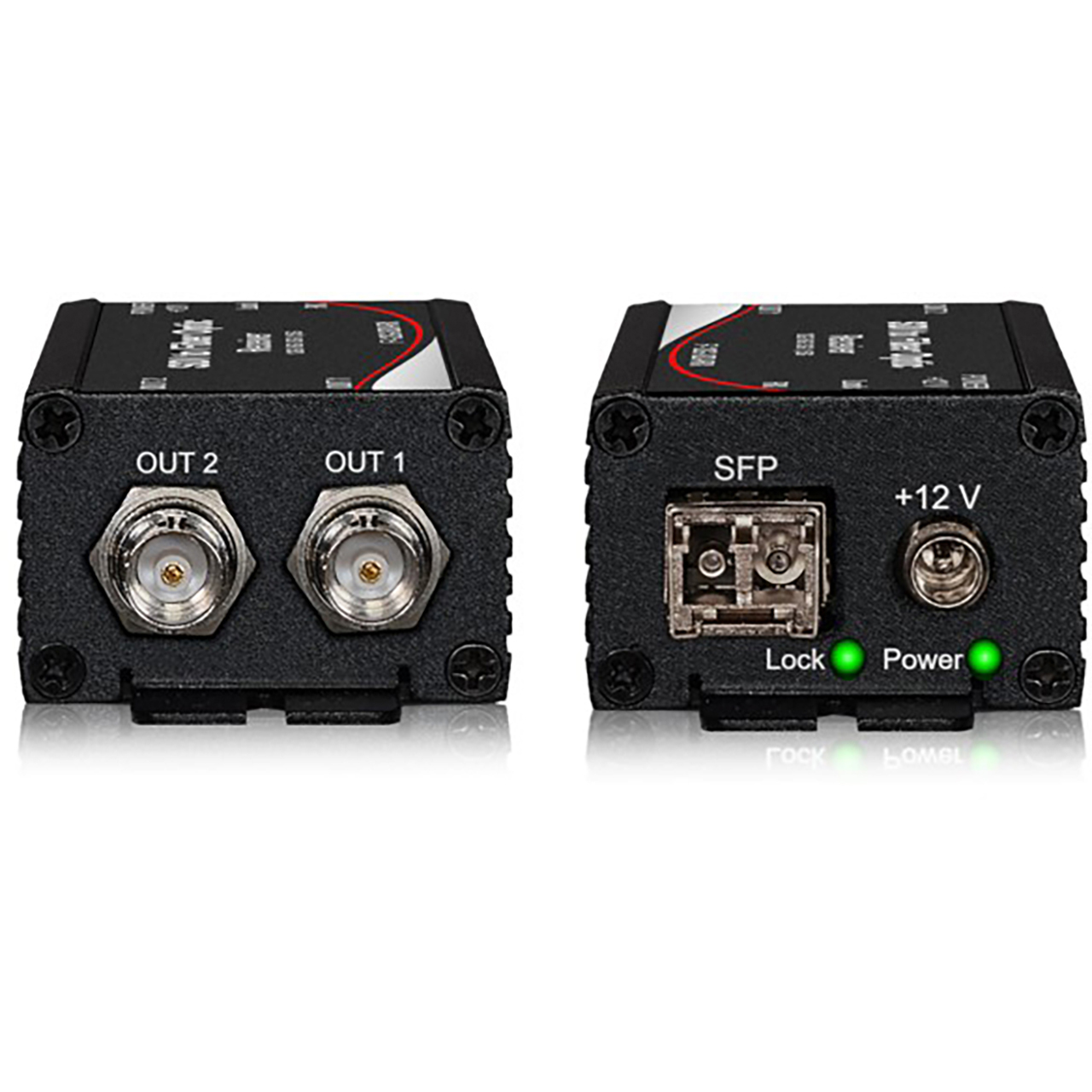 The Thor Fiber F-12G-SDI-TX/RX is a 12G and 3G HD SD-SDI to Simplex Singlemode LC Fiber 4K transmitter and receiver kit with Power Adapters. This powerful transmitter provides one SDI input and one SDI loopout, and the receiver provides two SDI outputs. Utilizing single mode fiber, this multirate Ultra High Definition has zero delay to perform under the most ciritcal applications in real world conditions.