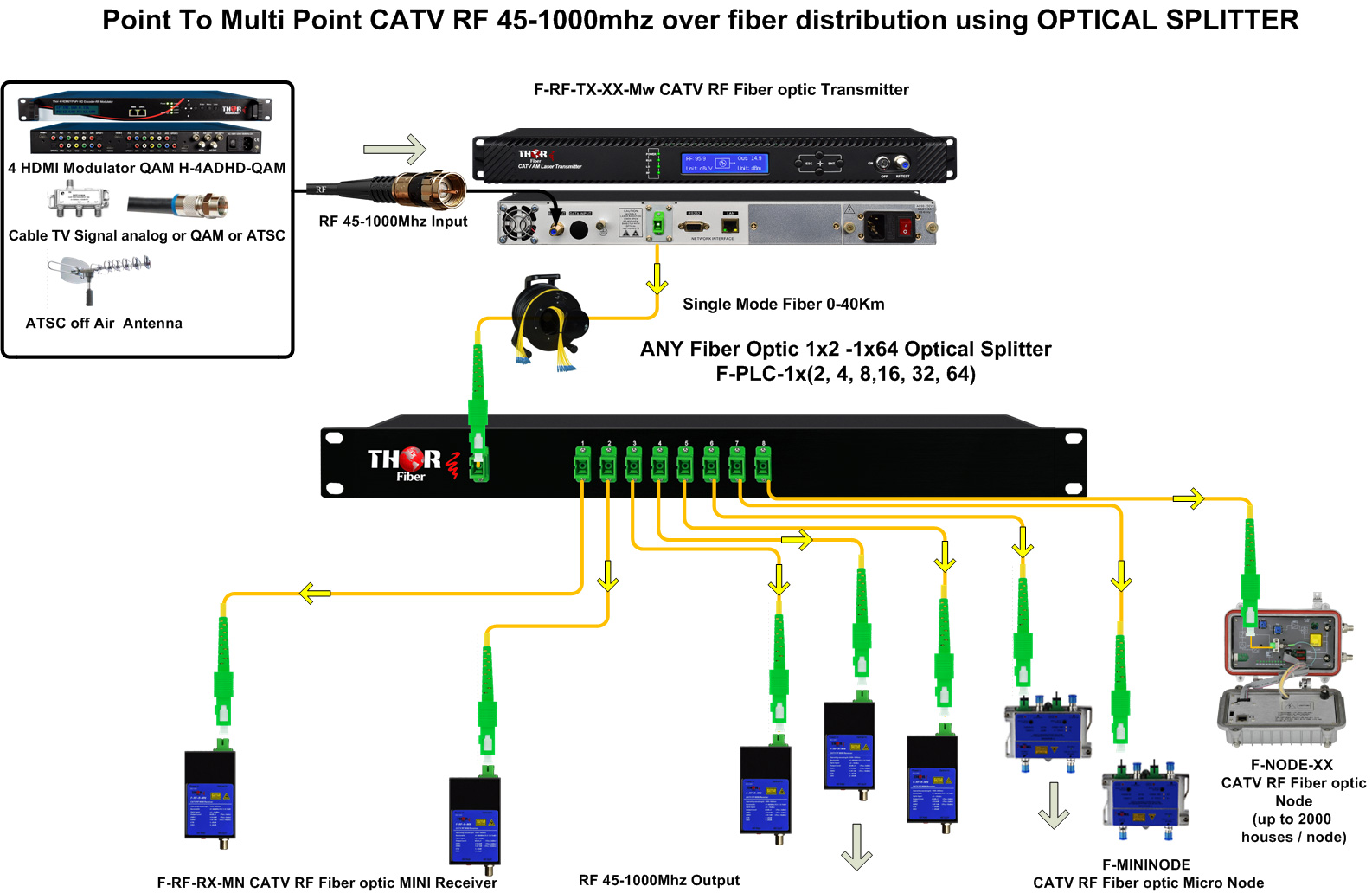 TheThor F-PLC-1X4-ST/PC 1x4 Singlemode Fiber optical splitter is a passive optical device that can split, or separate, an incident light beam into several light beams at a certain ratio.